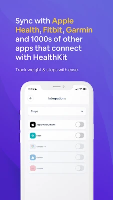 Sync with Apple Healthkit, Fitbit, Garmin & Google fit to track your steps and weight seamlessly.