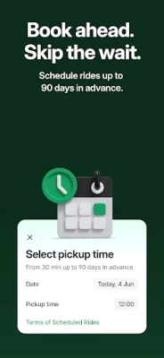 Need an airport transfer or an early morning ride? You can schedule your trip in advance from 30 minutes to 90 days before your expected pickup time.