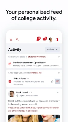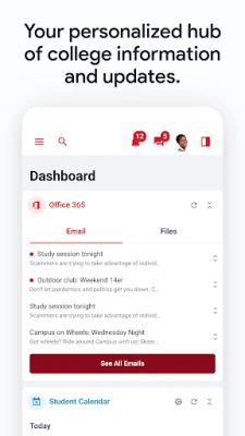 - Receive key notifications about important university events